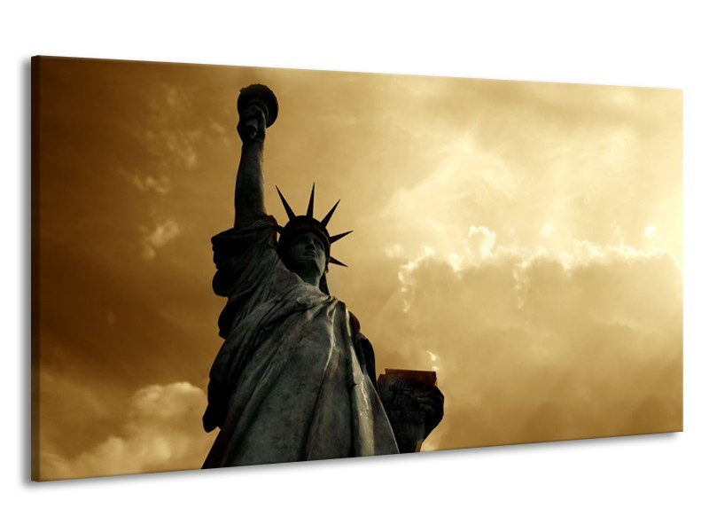 Canvas Schilderij Vrijheidsbeeld, New York | Grijs, Geel, Bruin | 190x100cm 1Luik