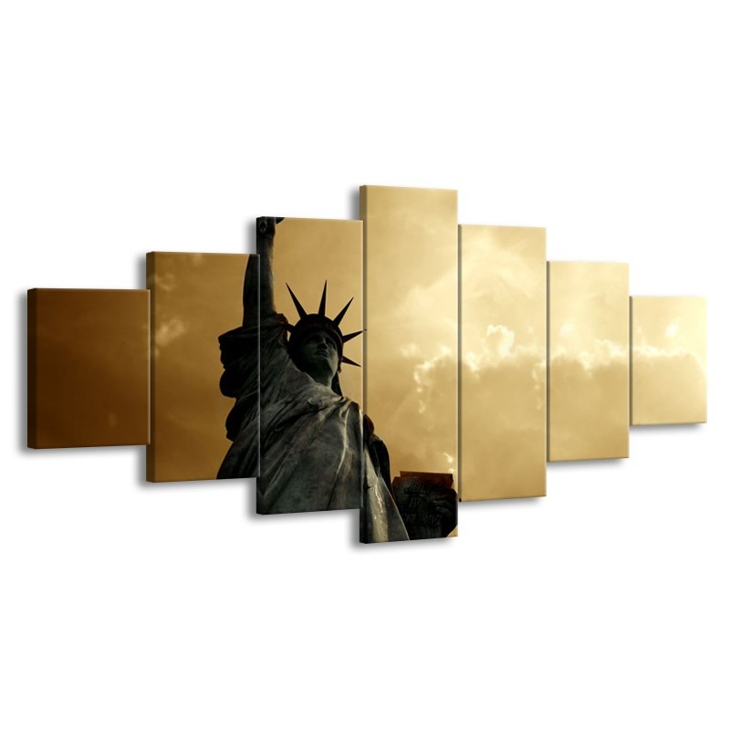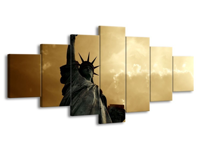 Canvas Schilderij Vrijheidsbeeld, New York | Grijs, Geel, Bruin | 210x100cm 7Luik