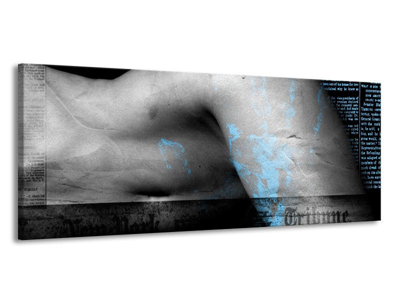 Canvas Schilderij Vrouw, Kunst | Blauw, Zwart, Grijs | 145x58cm 1Luik