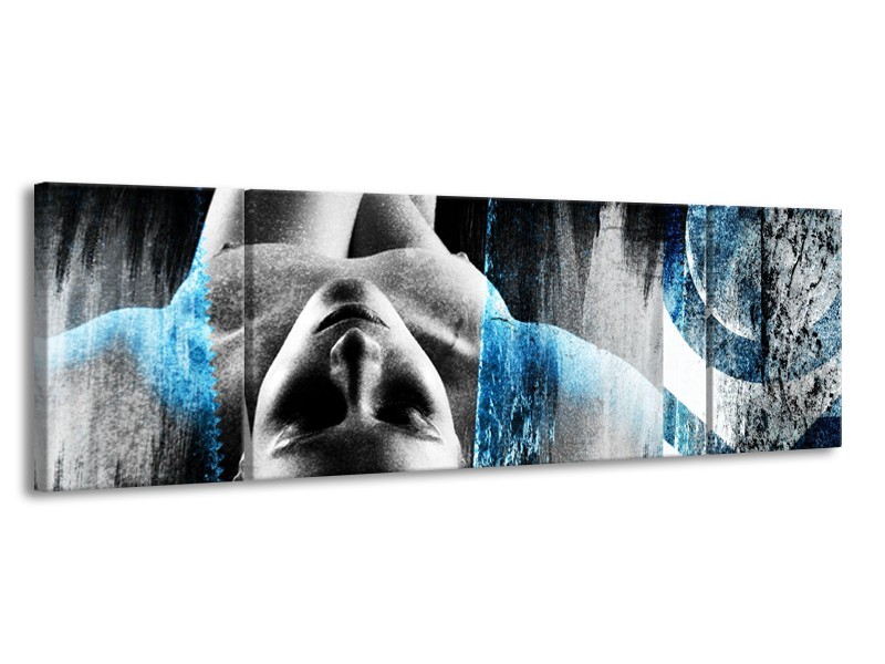 Canvas Schilderij Vrouw, Kunst | Grijs, Blauw | 170x50cm 3Luik