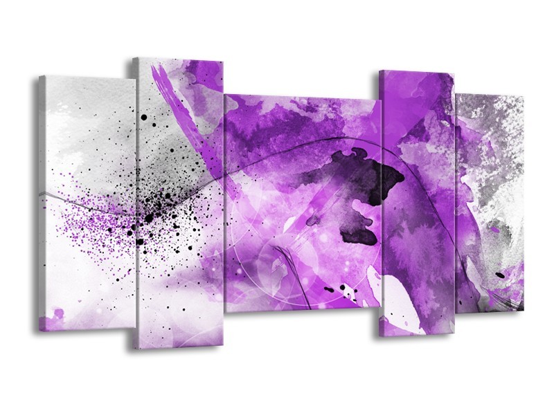 Canvas Schilderij Vrouw, Kunst | Paars, Grijs, Wit | 120x65cm 5Luik