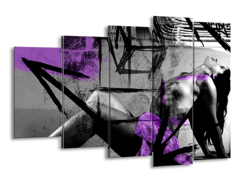 Canvas Schilderij Vrouw, Kunst | Paars, Grijs, Zwart | 150x100cm 5Luik