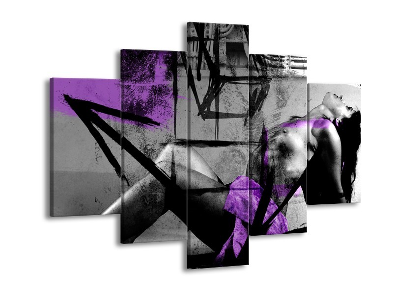 Canvas Schilderij Vrouw, Kunst | Paars, Grijs, Zwart | 150x105cm 5Luik