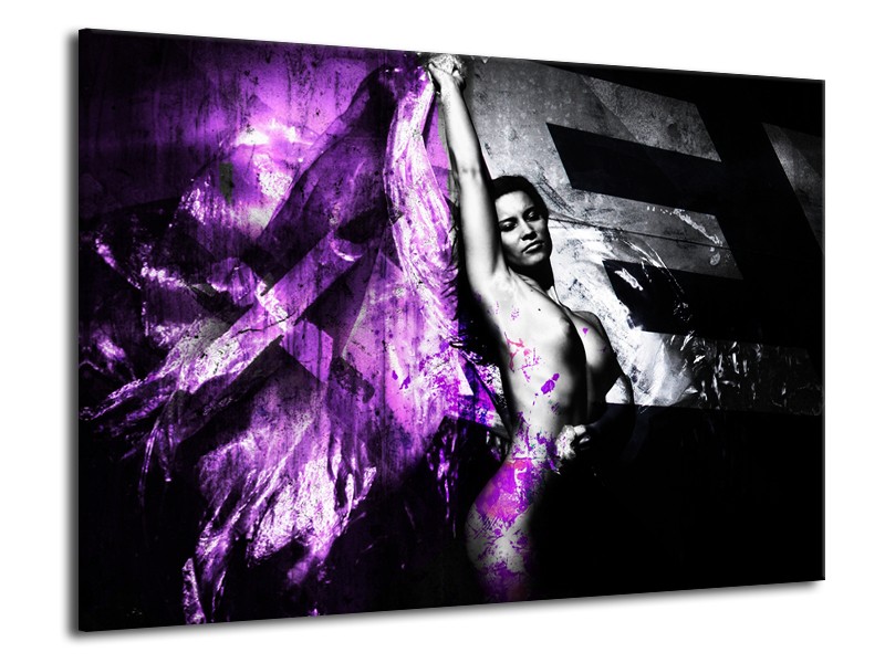 Canvas Schilderij Vrouw, Kunst | Paars, Grijs, Zwart | 70x50cm 1Luik