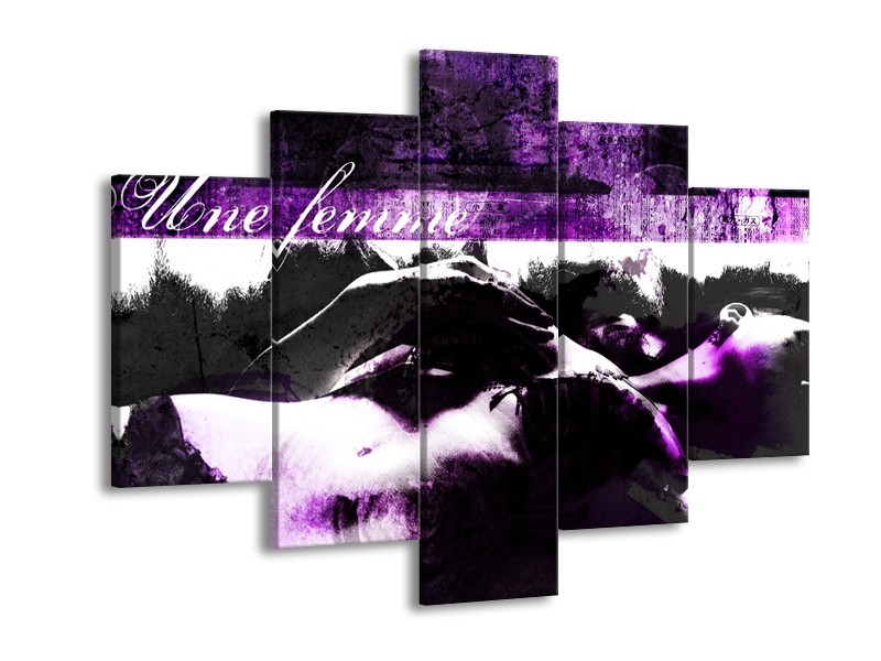 Canvas Schilderij Vrouw, Kunst | Paars, Zwart, Grijs | 150x105cm 5Luik