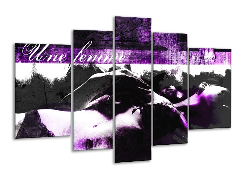 Canvas Schilderij Vrouw, Kunst | Paars, Zwart, Grijs | 170x100cm 5Luik