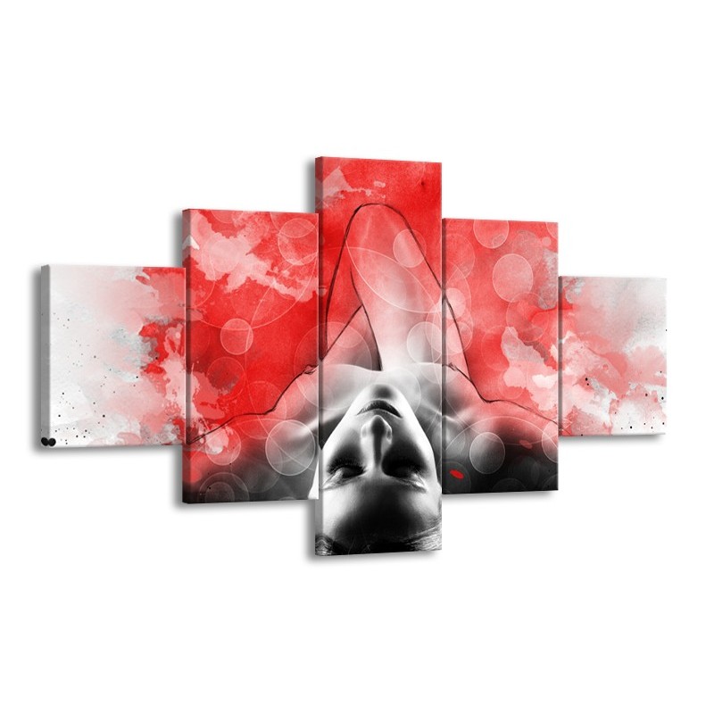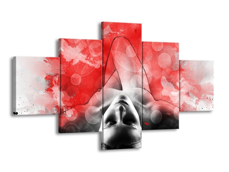 Canvas Schilderij Vrouw, Kunst | Rood, Grijs, Wit | 125x70cm 5Luik