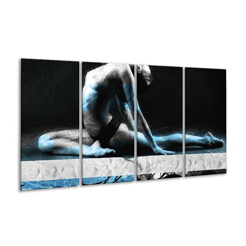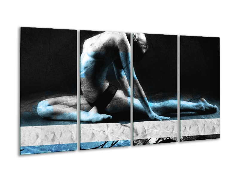 Canvas Schilderij Vrouw, Kunst | Zwart, Blauw, Grijs | 160x80cm 4Luik
