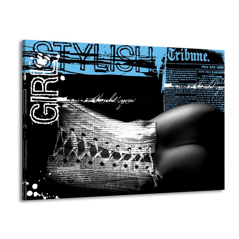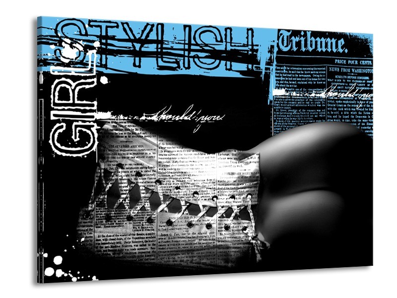 Canvas Schilderij Vrouw, Kunst | Zwart, Wit, Blauw | 100x70cm 1Luik