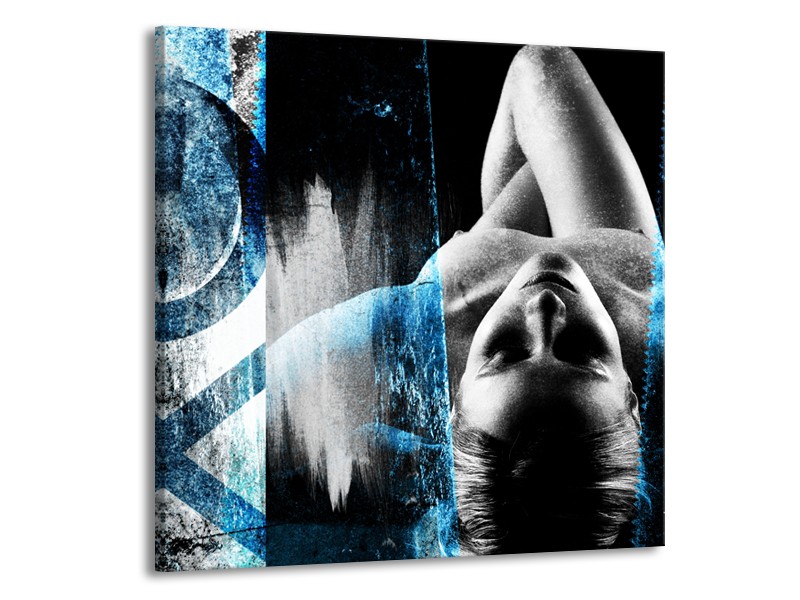 Canvas Schilderij Vrouw, Kunst | Zwart, Wit, Blauw | 50x50cm 1Luik