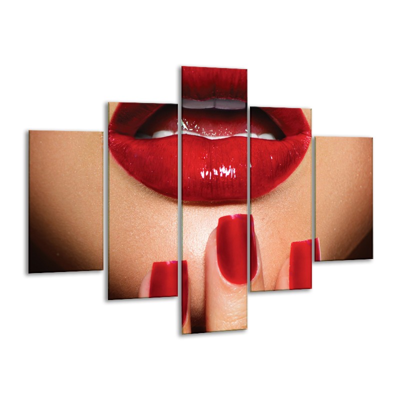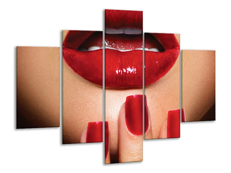 Canvas Schilderij Vrouw, Lippen | Rood, Bruin | 100x70cm 5Luik