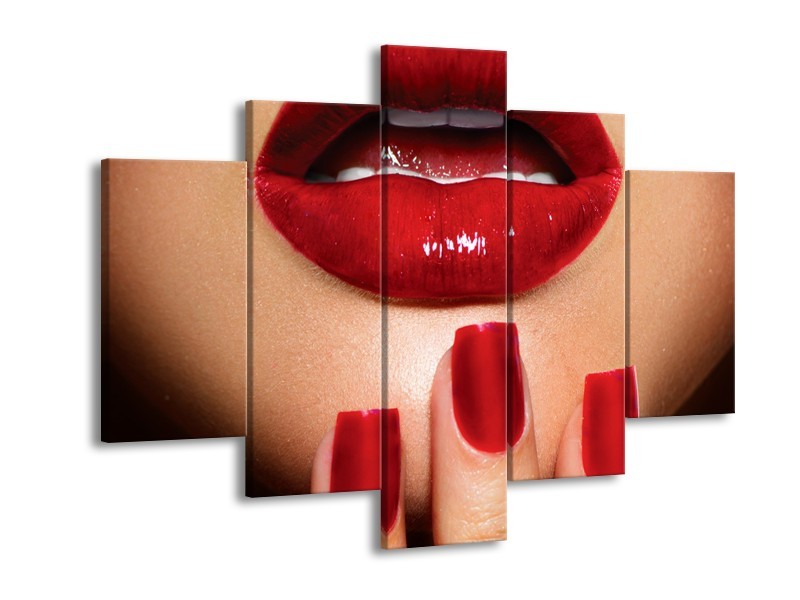 Canvas Schilderij Vrouw, Lippen | Rood, Bruin | 150x105cm 5Luik