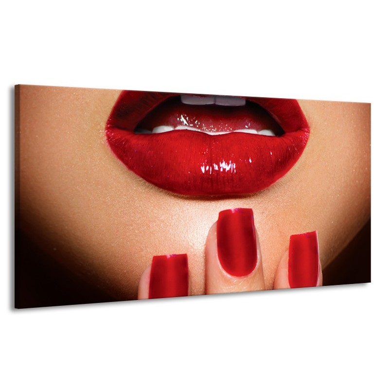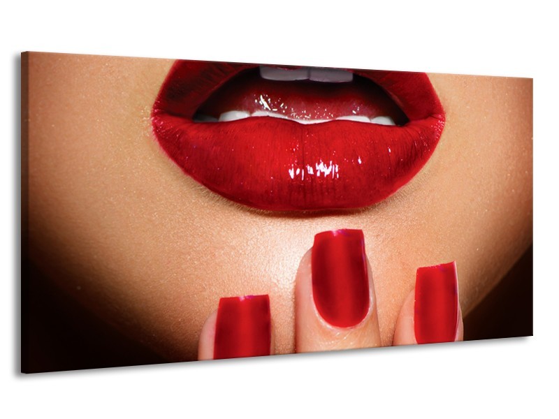 Canvas Schilderij Vrouw, Lippen | Rood, Bruin | 170x90cm 1Luik