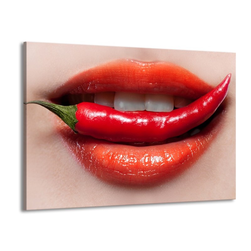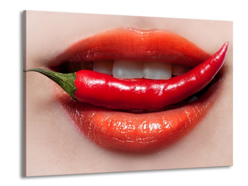 Canvas Schilderij Vrouw, Lippen | Rood, Crème | 100x70cm 1Luik