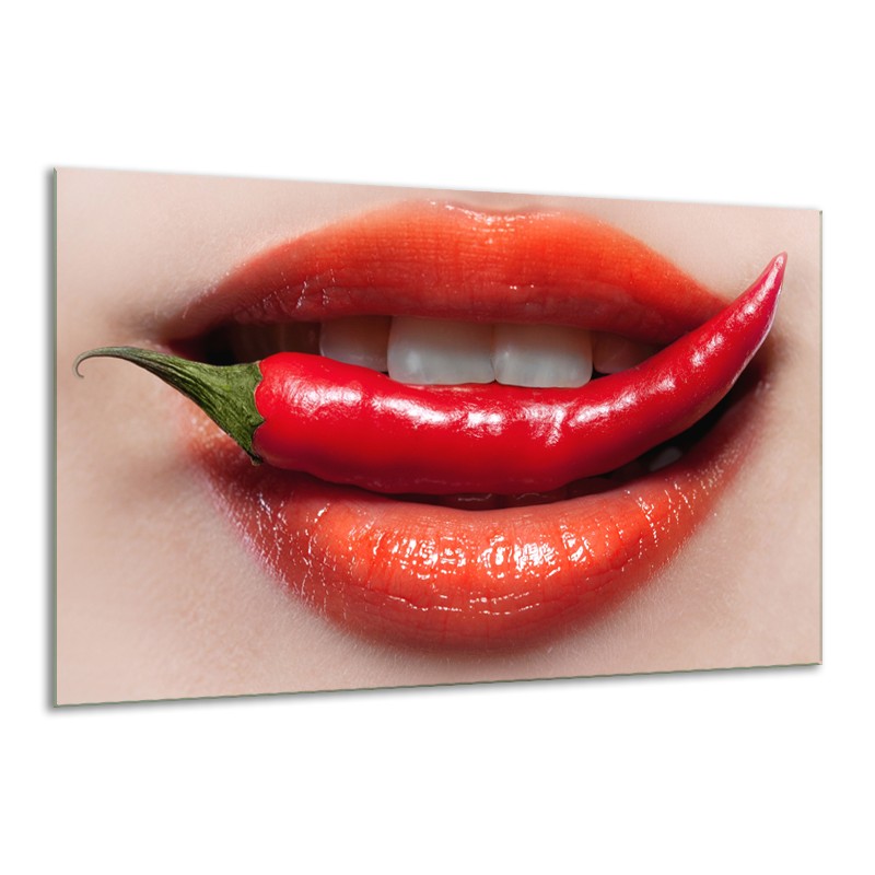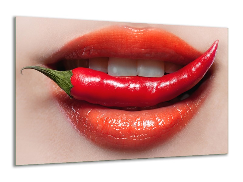 Canvas Schilderij Vrouw, Lippen | Rood, Crème | 120x70cm 1Luik