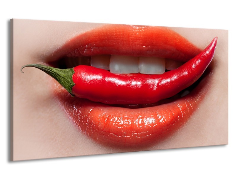 Canvas Schilderij Vrouw, Lippen | Rood, Crème | 190x100cm 1Luik