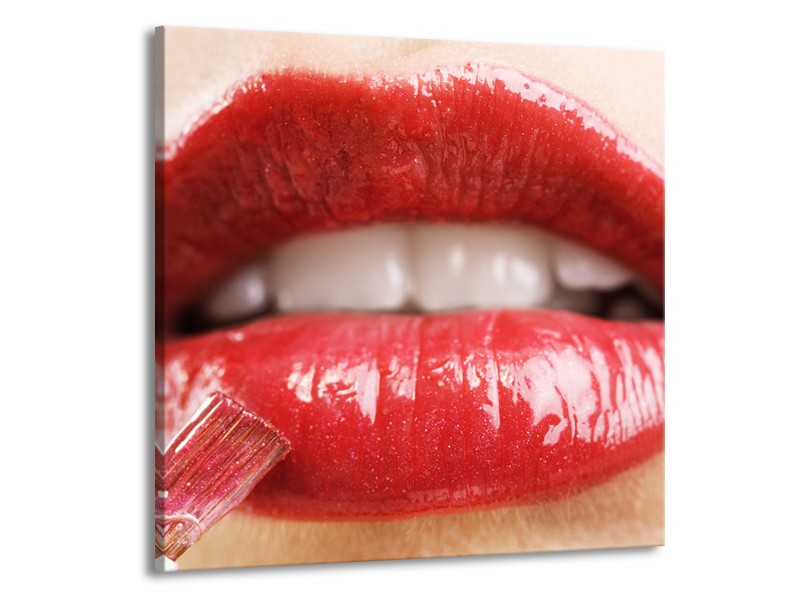 Canvas Schilderij Vrouw, Lippen | Rood, Crème | 50x50cm 1Luik