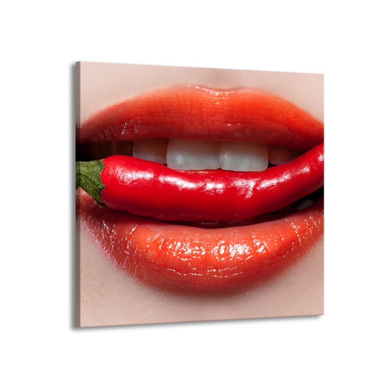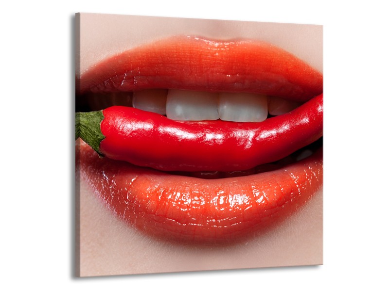 Canvas Schilderij Vrouw, Lippen | Rood, Crème | 50x50cm 1Luik