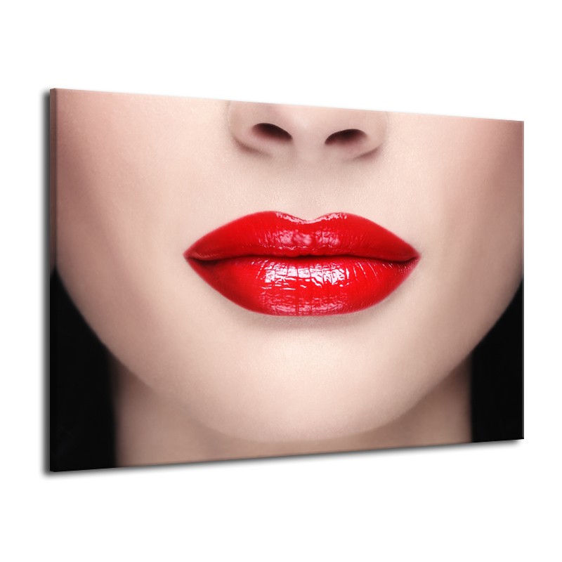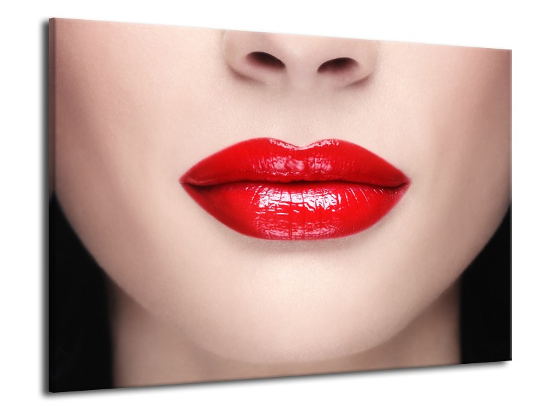 Canvas Schilderij Vrouw, Lippen | Rood, Crème | 70x50cm 1Luik