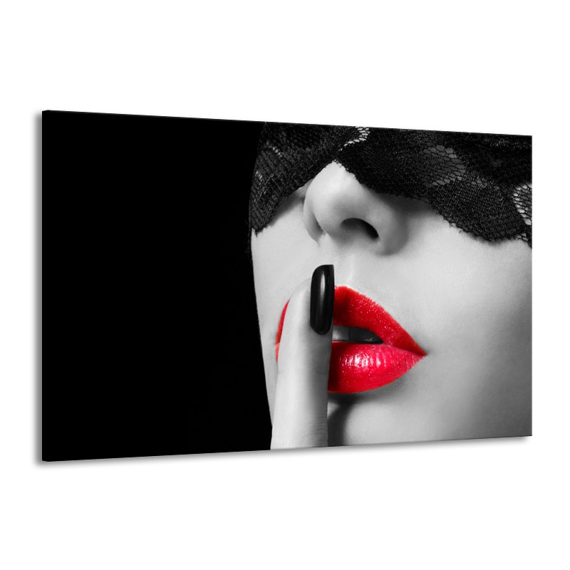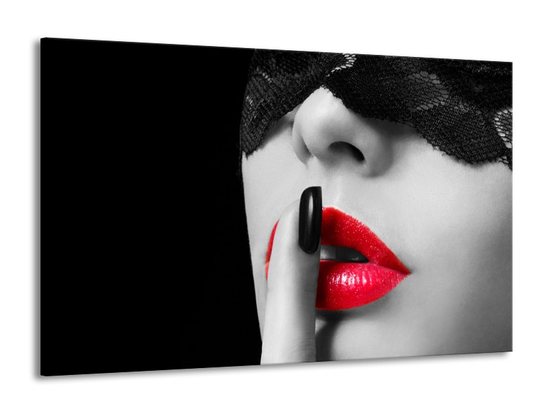 Canvas Schilderij Vrouw, Lippen | Zwart, Grijs, Rood | 140x90cm 1Luik