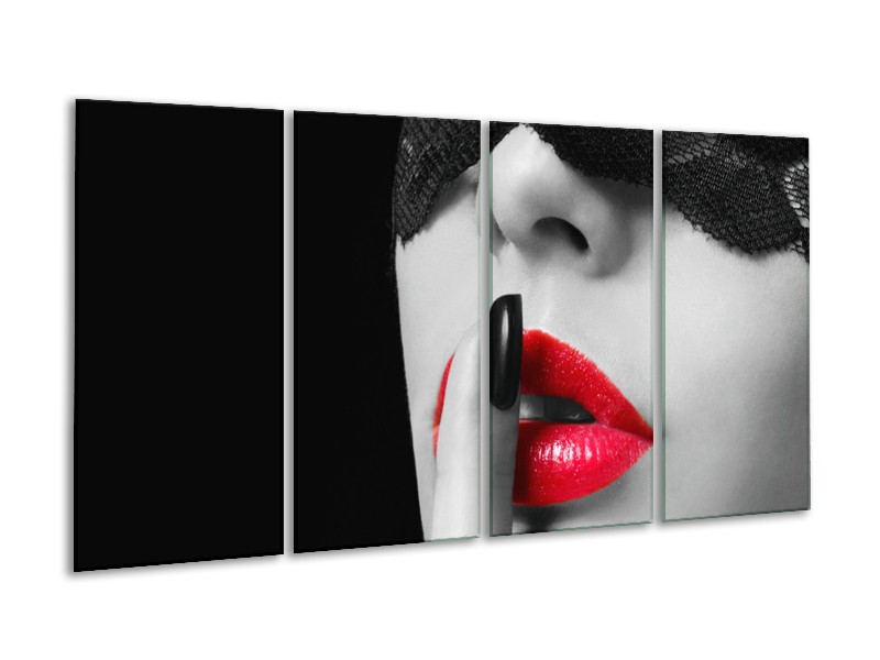 Canvas Schilderij Vrouw, Lippen | Zwart, Grijs, Rood | 160x80cm 4Luik
