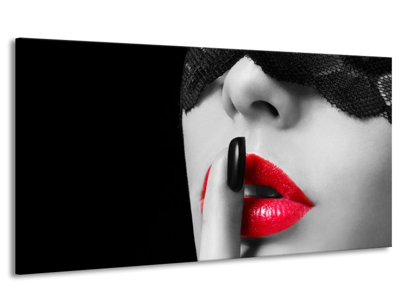 Canvas Schilderij Vrouw, Lippen | Zwart, Grijs, Rood | 170x90cm 1Luik