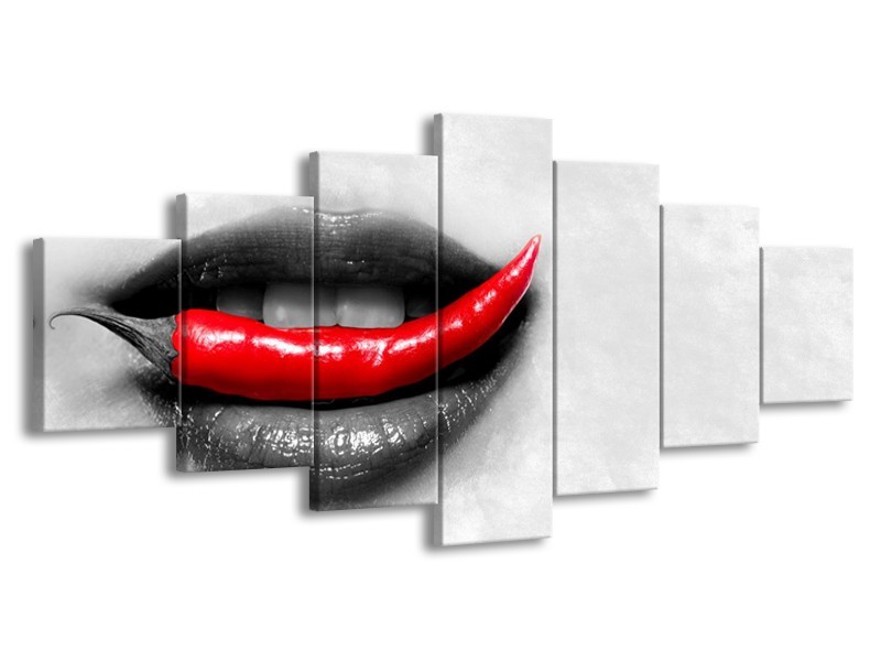 Canvas Schilderij Vrouw, Paprika | Grijs, Rood | 210x100cm 7Luik