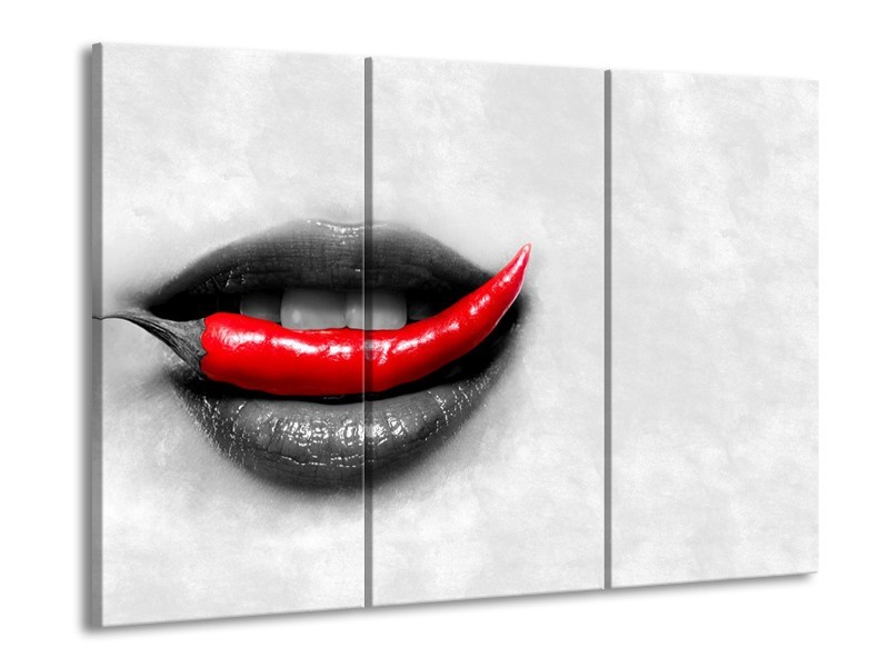 Canvas Schilderij Vrouw, Paprika | Grijs, Rood | 60x90cm 3Luik