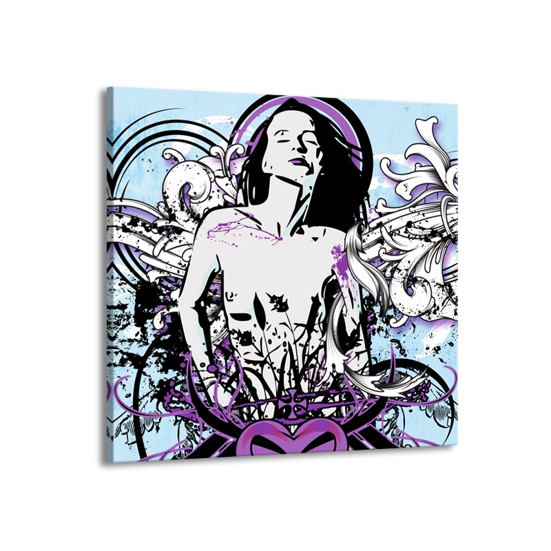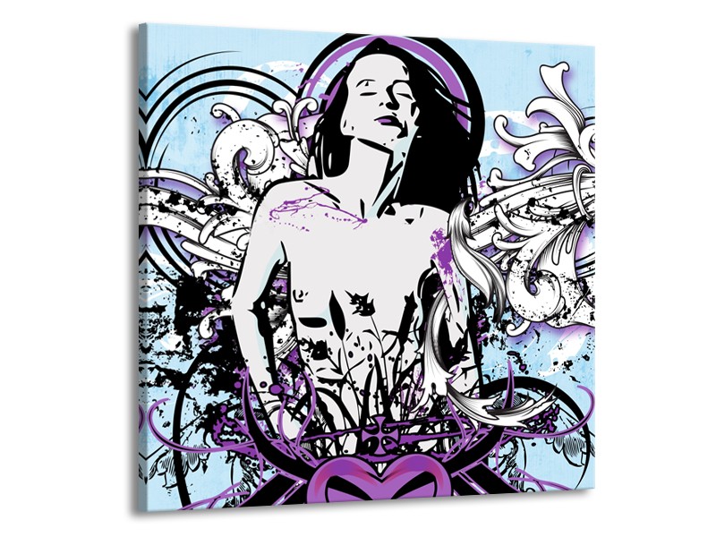 Canvas Schilderij Vrouw, Popart | Blauw, Paars, Wit | 50x50cm 1Luik