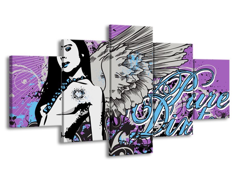 Canvas Schilderij Vrouw, Popart | Paars, Grijs, Blauw | 150x80cm 5Luik