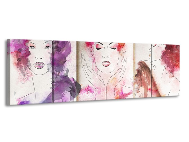Canvas Schilderij Vrouwen | Crème, Paars, Roze | 170x50cm 3Luik