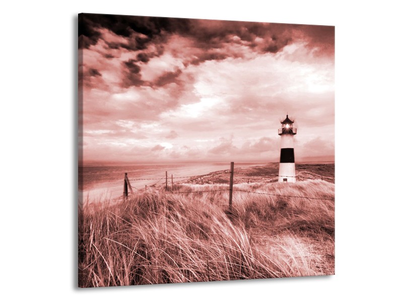 Canvas Schilderij Vuurtoren | Bruin, Rood | 70x70cm 1Luik