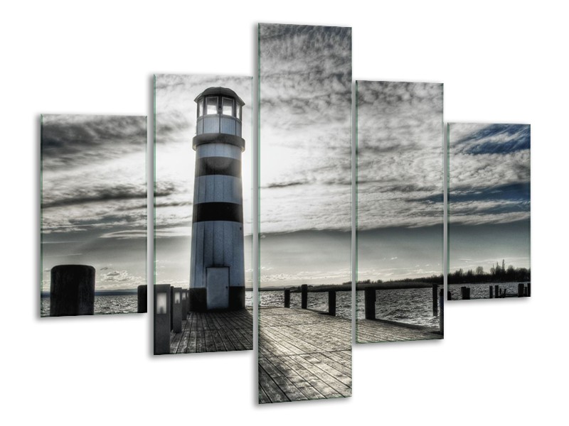 Canvas Schilderij Vuurtoren | Grijs, Blauw | 100x70cm 5Luik
