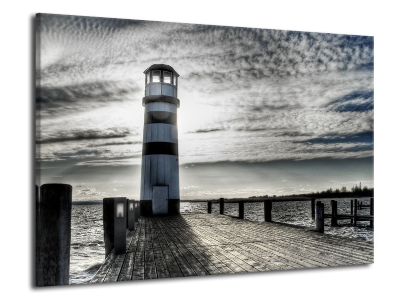 Canvas Schilderij Vuurtoren | Grijs, Blauw | 70x50cm 1Luik