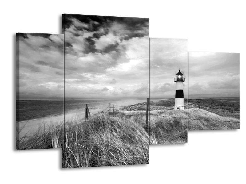 Canvas Schilderij Vuurtoren | Grijs, Zwart, Wit | 120x75cm 4Luik