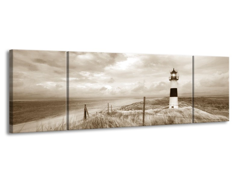 Canvas Schilderij Vuurtoren | Sepia | 170x50cm 3Luik