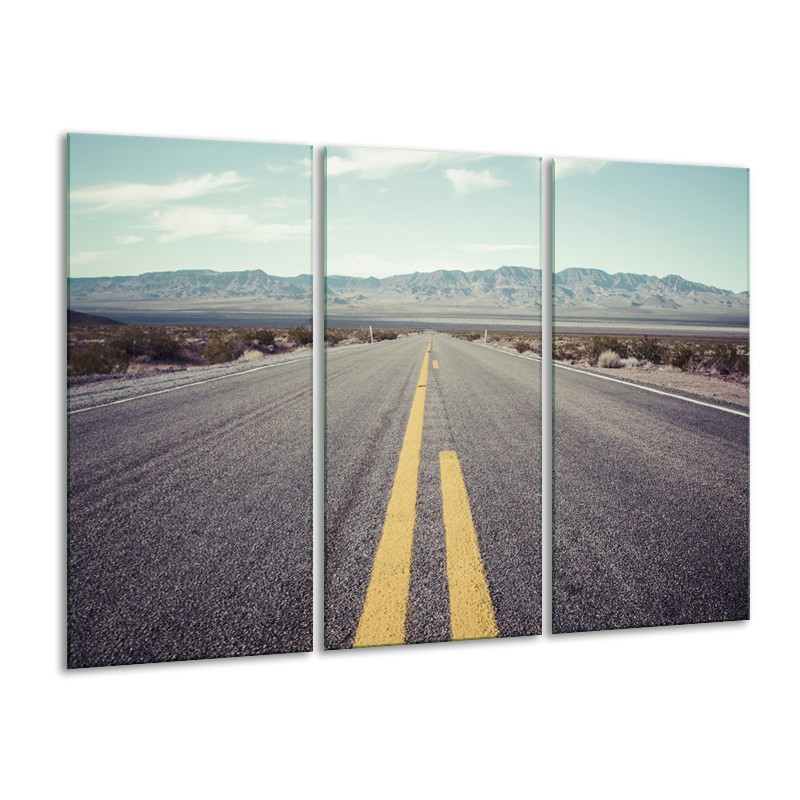 Canvas Schilderij Weg, Natuur | Grijs, Bruin, Geel | 120x80cm 3Luik