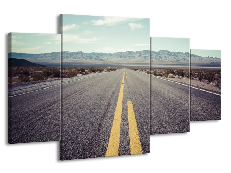 Canvas Schilderij Weg, Natuur | Grijs, Bruin, Geel | 160x90cm 4Luik
