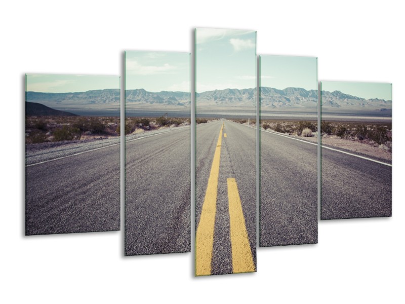 Canvas Schilderij Weg, Natuur | Grijs, Bruin, Geel | 170x100cm 5Luik