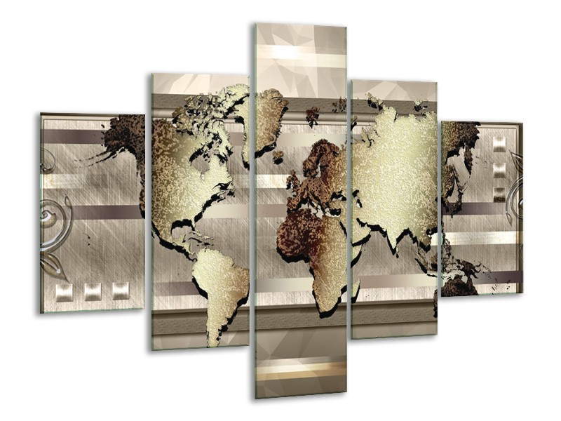 Canvas Schilderij Wereldkaart | Bruin, Goud | 100x70cm 5Luik