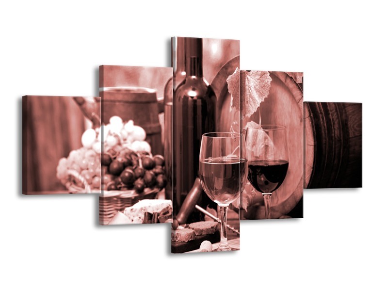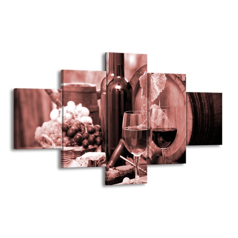 Canvas Schilderij Wijn, Keuken | Bruin, Rood | 125x70cm 5Luik