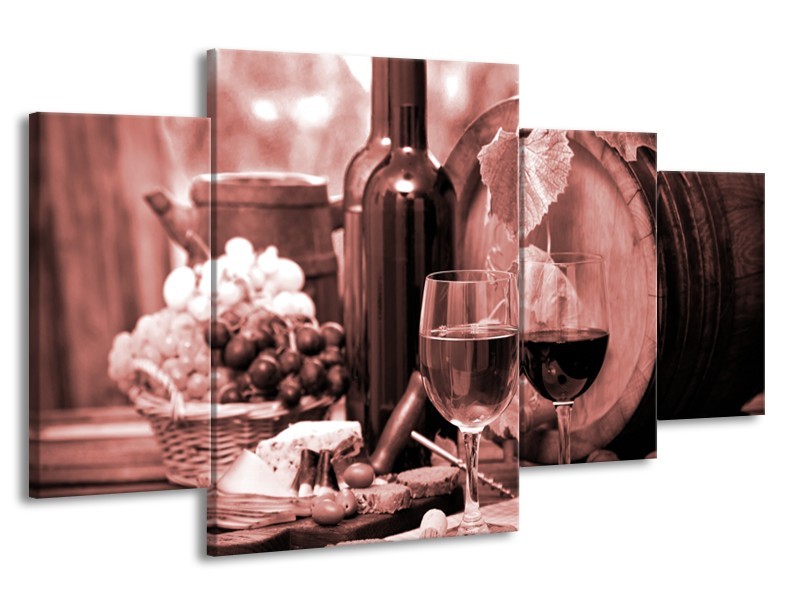 Canvas Schilderij Wijn, Keuken | Bruin, Rood | 160x90cm 4Luik