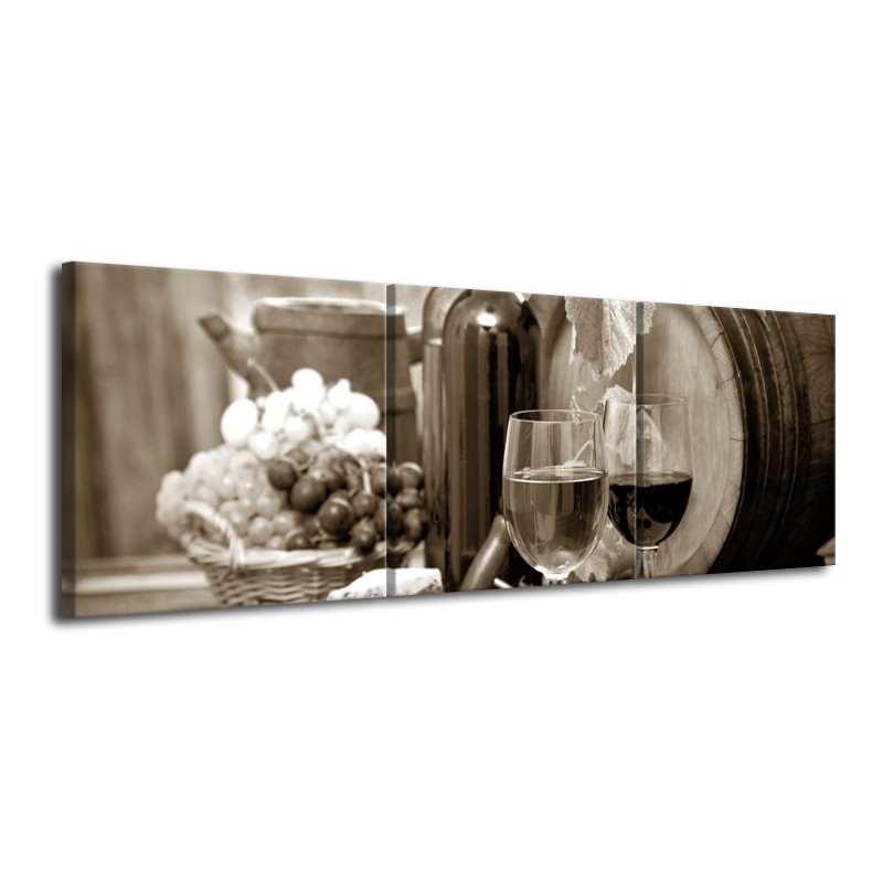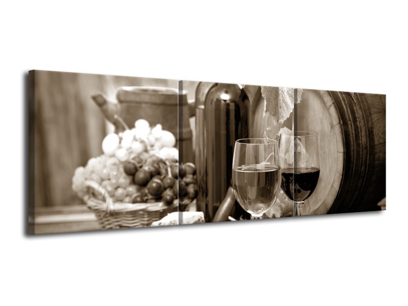 Canvas Schilderij Wijn, Keuken | Sepia | 120x40cm 3Luik