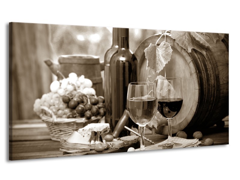 Canvas Schilderij Wijn, Keuken | Sepia | 170x90cm 1Luik