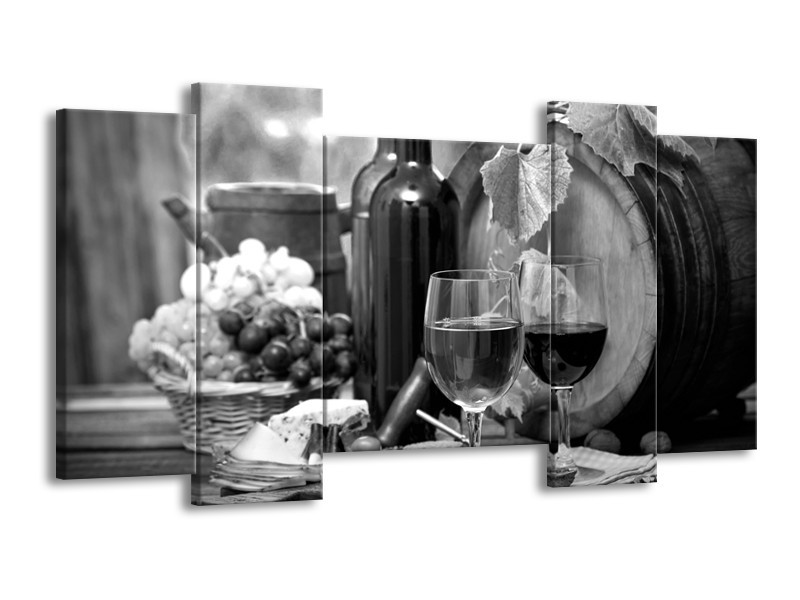 Canvas Schilderij Wijn, Keuken | Zwart, Wit, Grijs | 120x65cm 5Luik