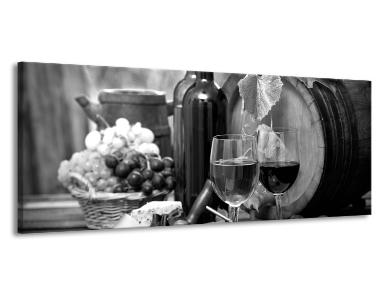 Canvas Schilderij Wijn, Keuken | Zwart, Wit, Grijs | 145x58cm 1Luik