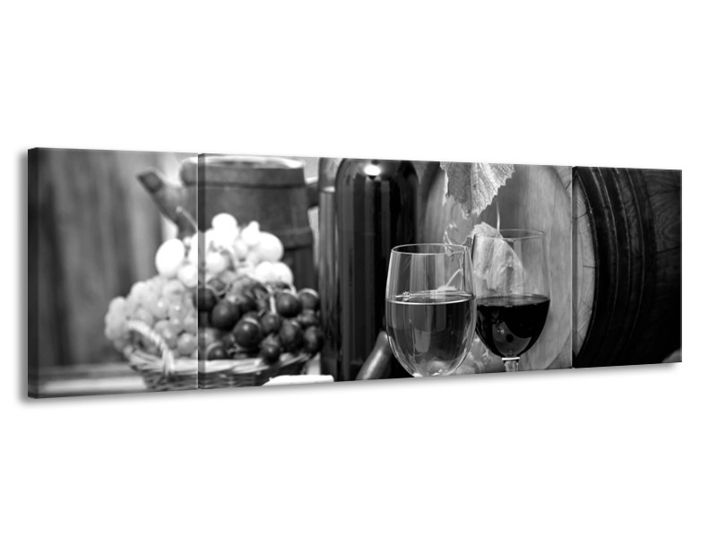 Canvas Schilderij Wijn, Keuken | Zwart, Wit, Grijs | 170x50cm 3Luik