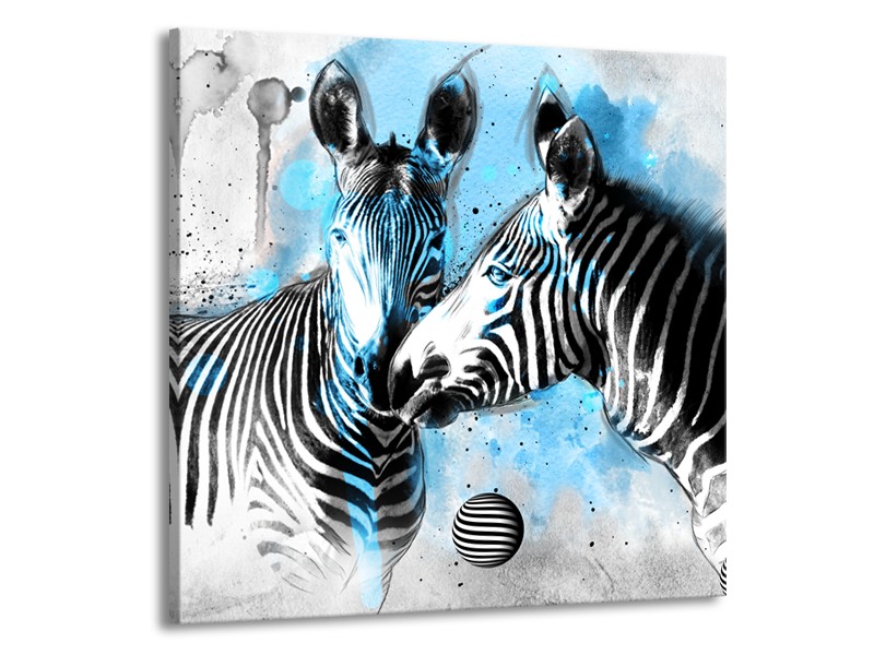 Canvas Schilderij Zebra, Dieren | Blauw, Zwart, Wit | 70x70cm 1Luik