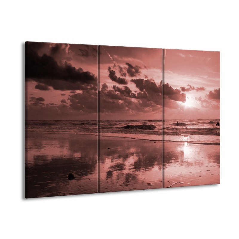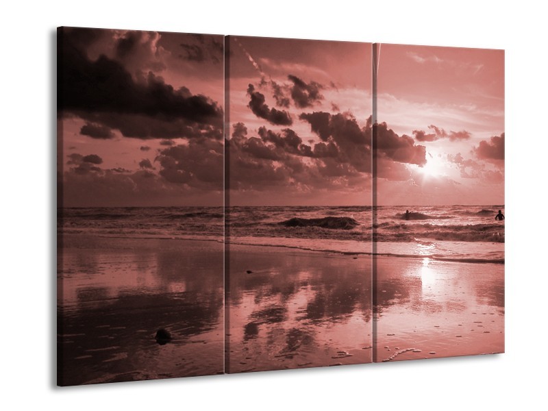 Canvas Schilderij Zee | Bruin, Rood | 60x90cm 3Luik