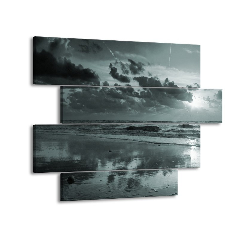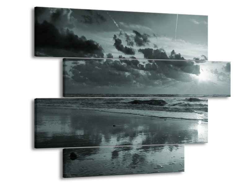 Canvas Schilderij Zee | Grijs, Groen | 115x85cm 4Luik